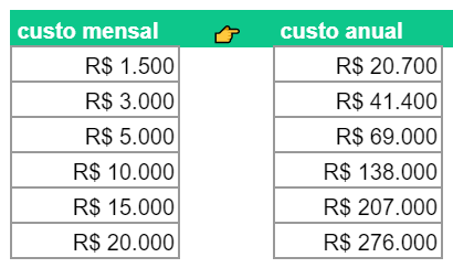 Então como referência, veja esta tabela com custos mensais (e anuais) e qual a quantia necessária para que o seus investimentos💰 cubram seus gastos: