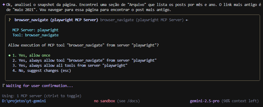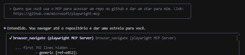 Esta configuração já é suficiente para que o gemini tenha o básico do Playwright MCP a disposição.